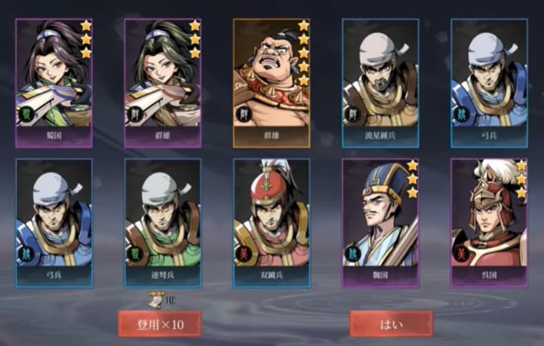 序盤から強い武将が揃いやすくて、サクサク戦力を伸ばしていけるのが魅力♪