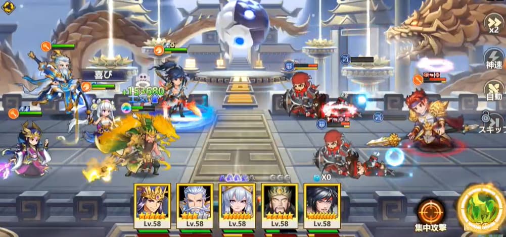 武将ごとのスキルや相性を考えた編成がかなり重要で、戦略的なバトルが楽しめるゲームです♪