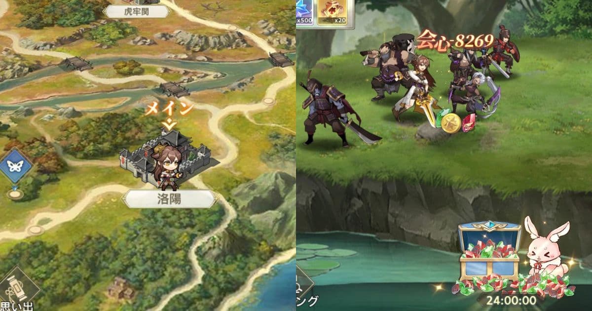 鬼喰三国は基本的に放置で進行できますが、桃園豪傑伝では移動や探索をプレイヤー自身が行う必要がありますよ!
