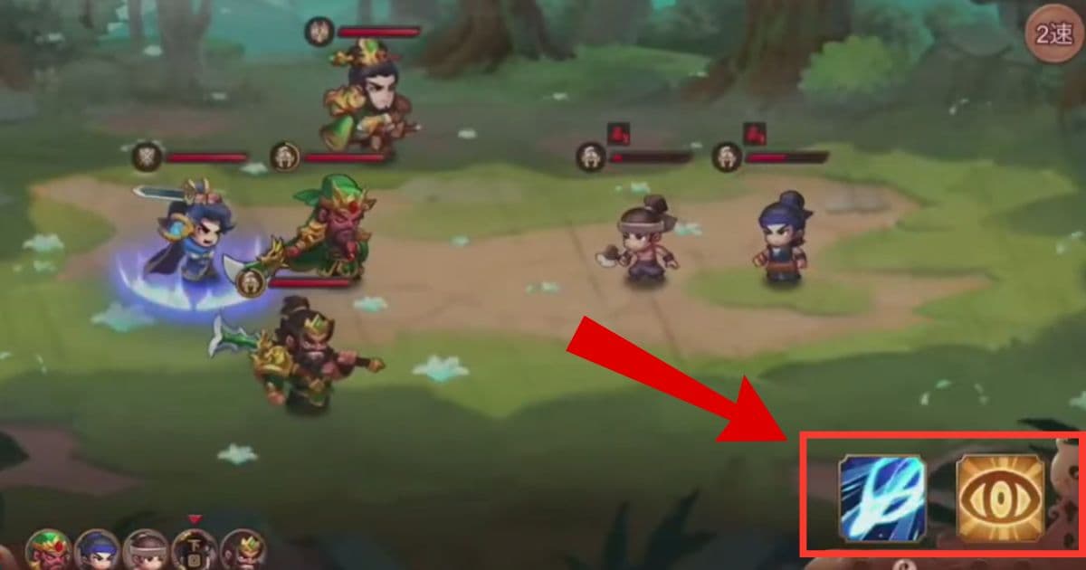 完全なターン制ではなく、5人の武将それぞれが自動で行動するオートバトル形式になっています。