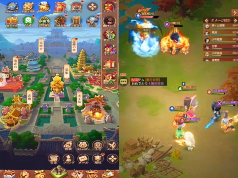 三国志転生大陸のホーム画面と戦闘シーン