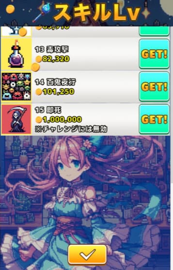 どのスキルを装備して戦闘に臨むかで結果が変わってくるので、放置寄りでありながら戦略性も楽しめるゲームです!