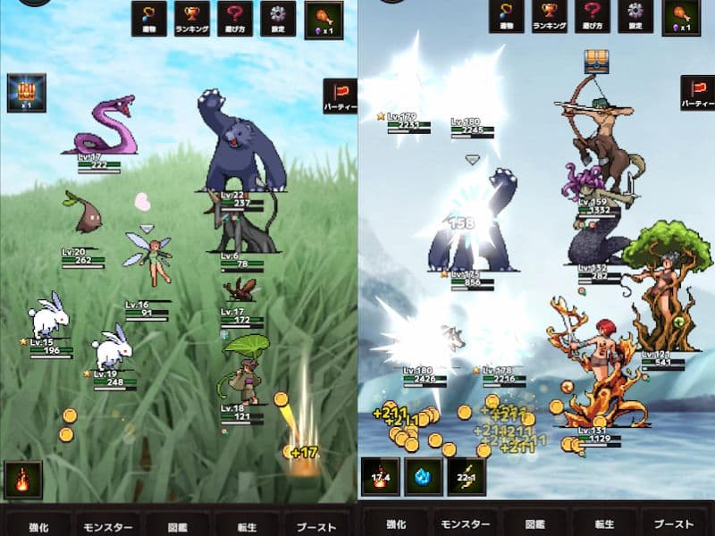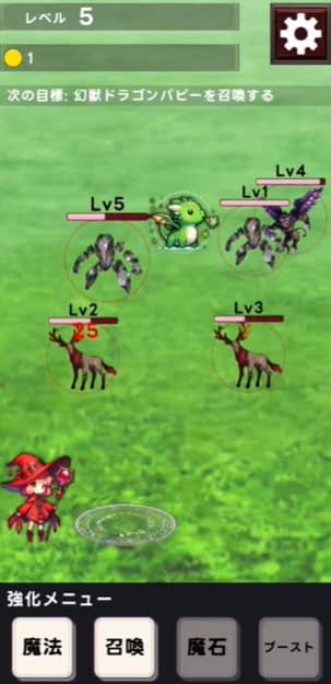 タップや放置でバトルを進め、プレイヤーはコインを使って幻獣やスキルを強化しながら、どんどん敵を倒していくシンプルなゲーム性が特徴です!