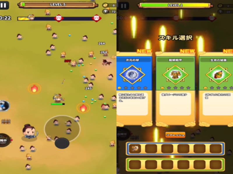 つまり、どのゲームもサバイバー系アクションの基本的な遊び方はほぼ同じで、敵をどんどん倒しながらキャラクターを強くしていく爽快なバトルが楽しめるのが特徴です!
