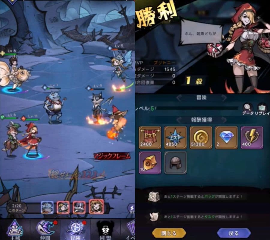 キャラを育成しながらダンジョン攻略を進めていくスタイルで、イーヴルテイルズと同じく育成メインの放置ゲーです。