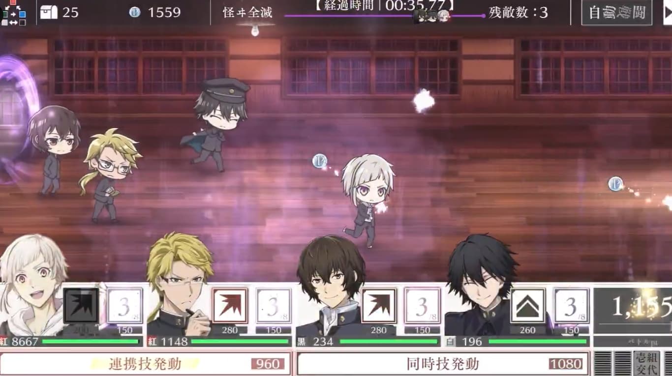 東京リベンジャーズ UNLIMITEDと同じくリアルタイムで進行するバトル形式ですが、學園文豪ストレイドッグスの方が少し戦略性が高いという印象です!