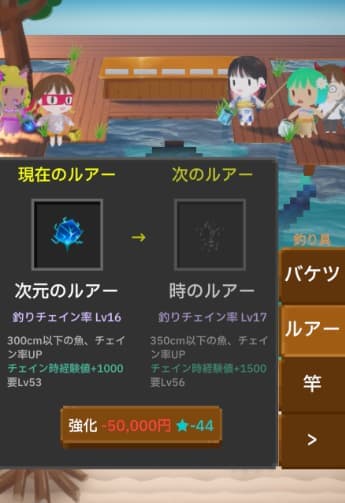 釣竿や釣針も強化してレベルUPできる!