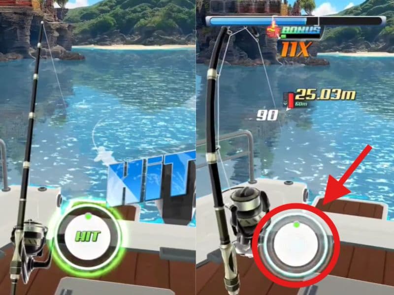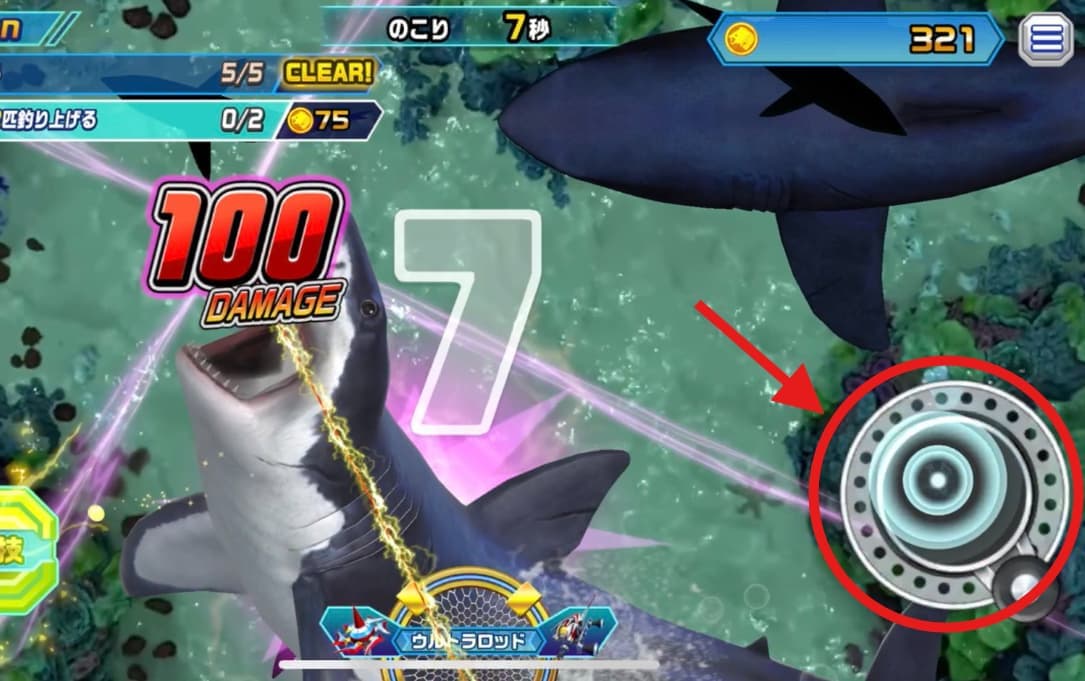 魚がヒットしたら3秒以内にボタン押下&連打