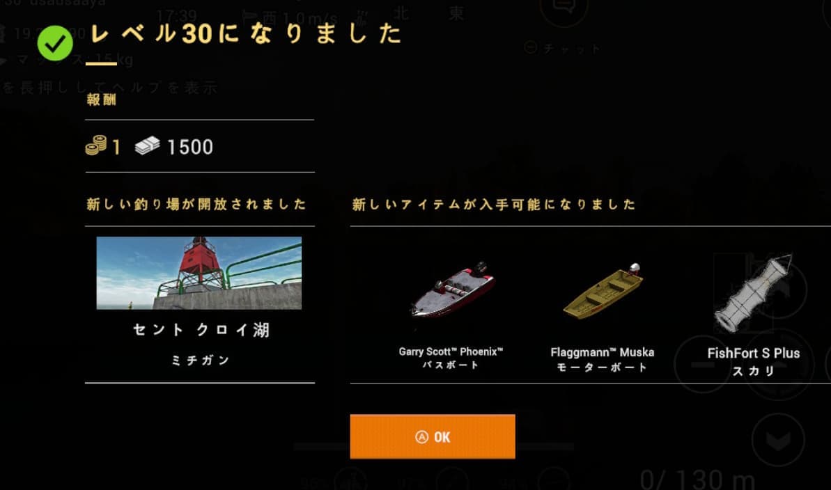 レベルUPで釣り場や装備が少しずつ増えていく