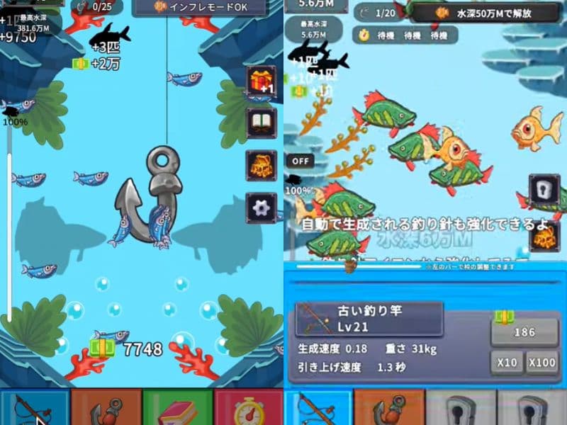 無課金で遊べる釣りゲーム②インフレ系釣りゲーム ~放置xクリッカーx探索RPG~
