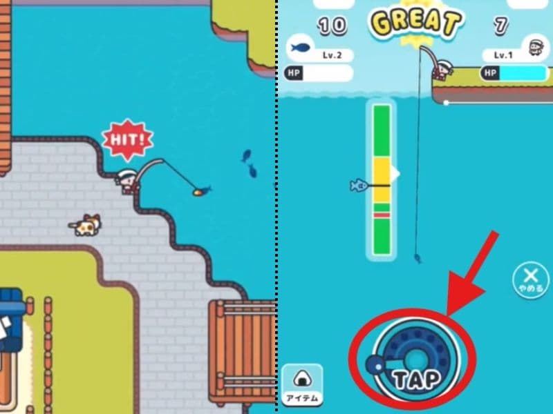 基本はタップのみの簡単操作で、ひたすら釣っていきますよ!