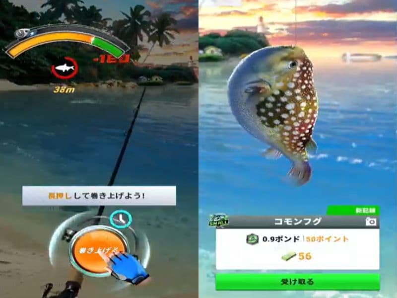 釣り上げる時にシビアなタイミング操作はなく、タップ中心で気軽に遊べます♪